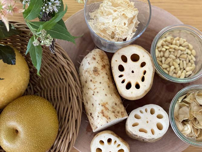 秋の養生は、肺の養生。肺は「乾燥」に弱いため、「乾燥」に気をつけ、潤いを保つことが重要です。
