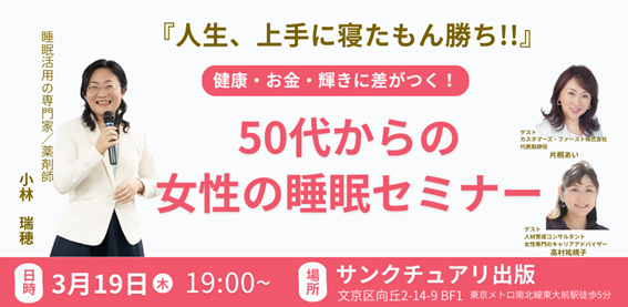今回は、大人女性応援企画。筆者主催の【50代からの女性の睡眠セミナー】のご案内です。