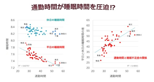 最近はリモートワークから再び出社しての仕事へとも戻す企業も少なくありません。通勤時間。日本人の睡眠には大きく影響を及ぼす要因の一つ。